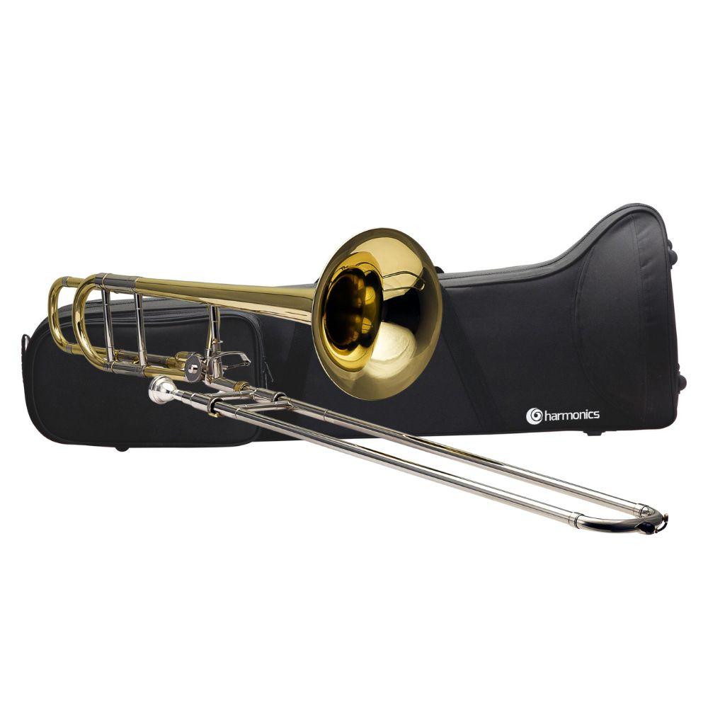 Harmonics Stick Trombone HSL-801L Bb/F Tenor Rod Trombone Trumpet Gold Lacquer with Soft Carrying Case